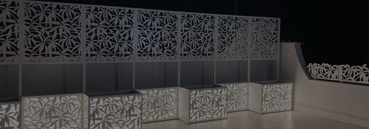Nos inspiramos en el trabajo de la naturaleza y nos gusta planificar con sus formas y sombras. Apreciamos el sentimiento de una relación honesta con los elementos principales y buscamos un efecto pacífico en nuestros clientes. Diseñamos y producimos pantallas de aluminio cortadas con láser para terrazas, macetas y pérgolas…